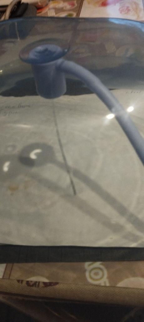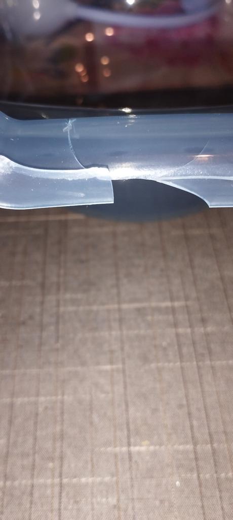 Crack at the bottom. The lid is chipped at the top.