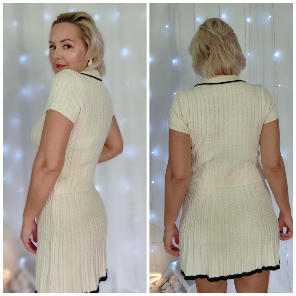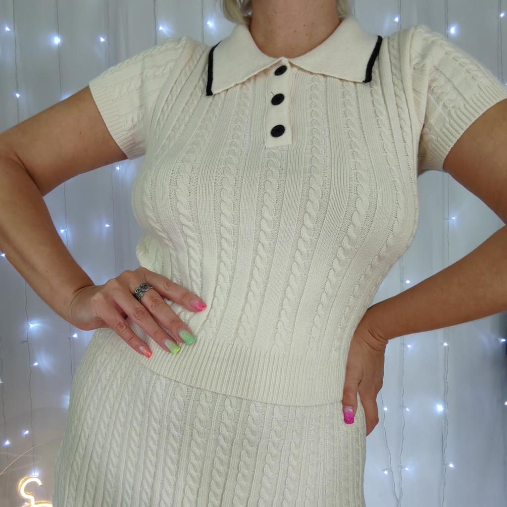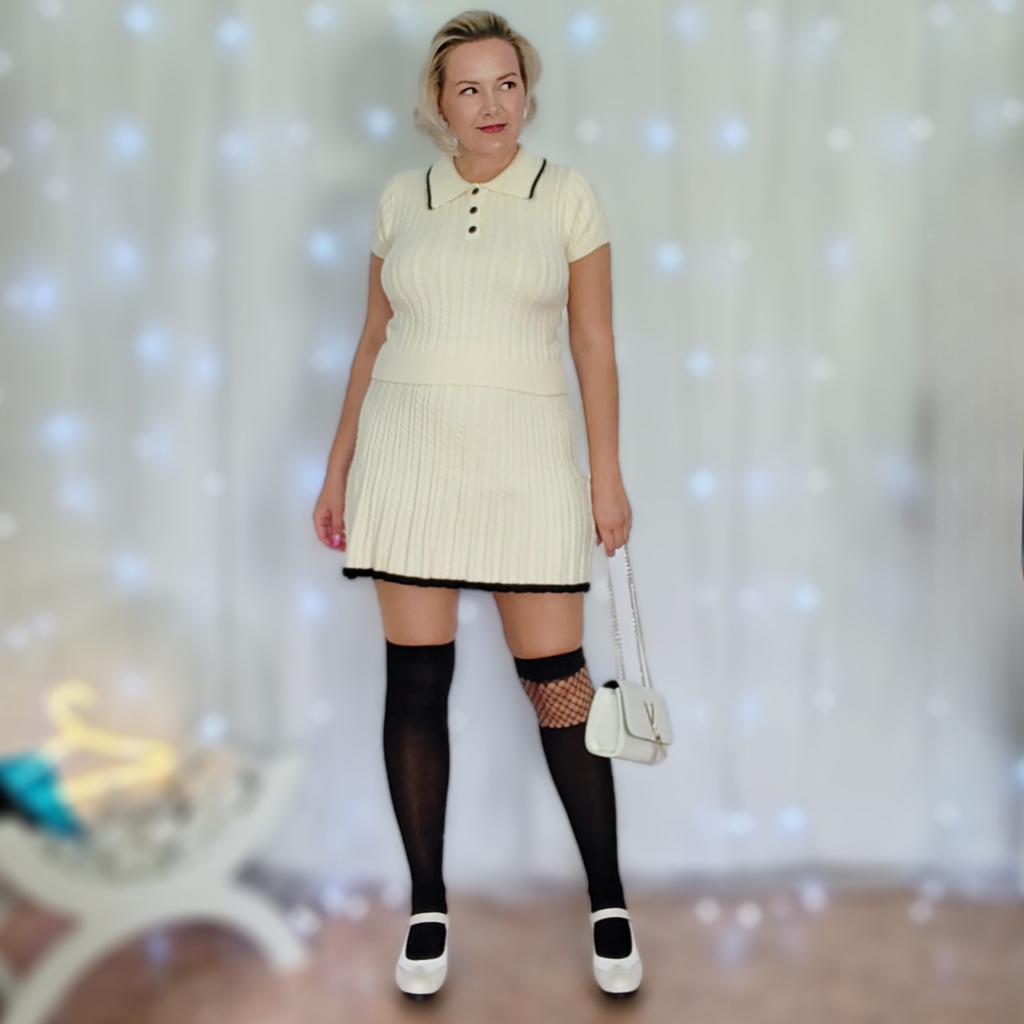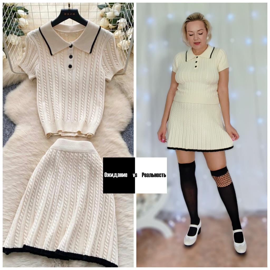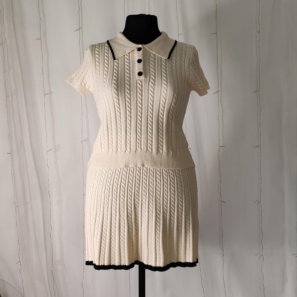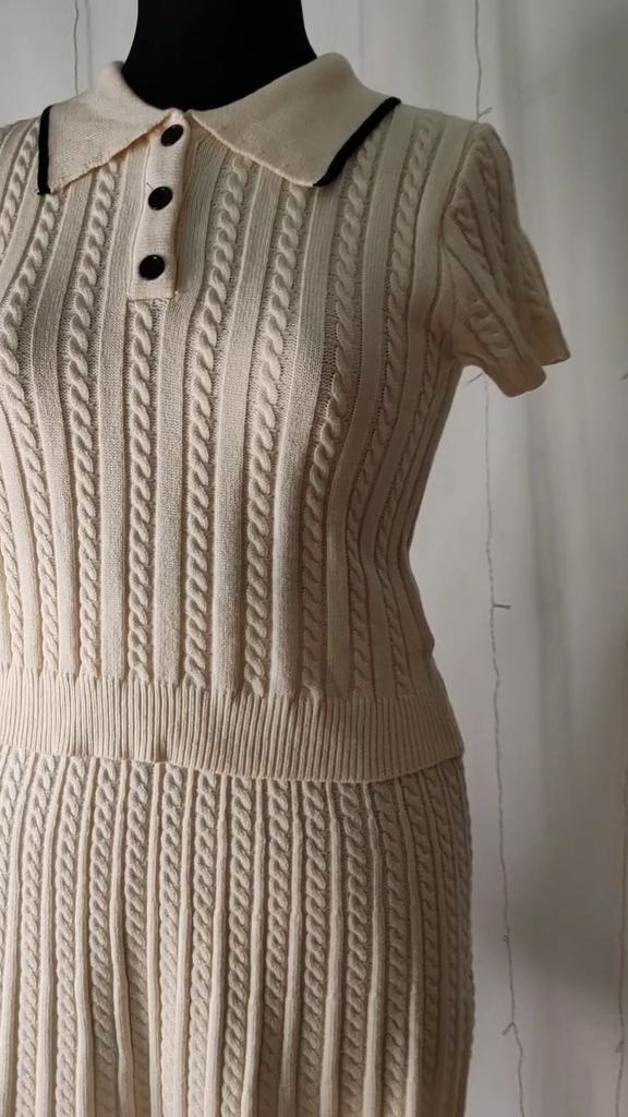 Fashion Knitted 2pc Two Pieces Suits Skinny Short Sleeves Polo Shirt+Short Skirt Drilled Women Simple Style Summer Sets