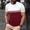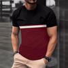 Men's Color Blocked Round Neck T-shirt with D-print Top Short Sleeved T-shirt for Summer Loose Fit Men's Casual Wear Shirt