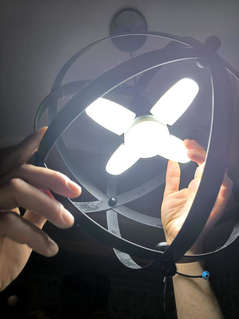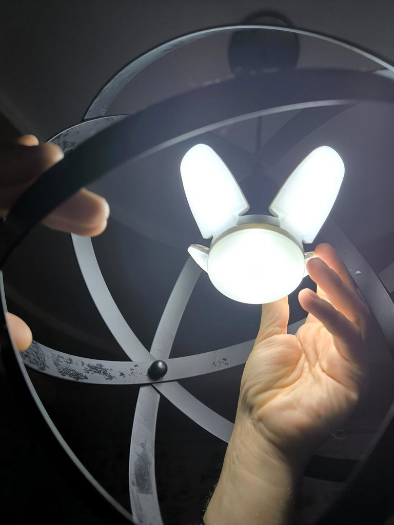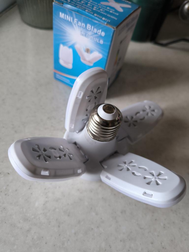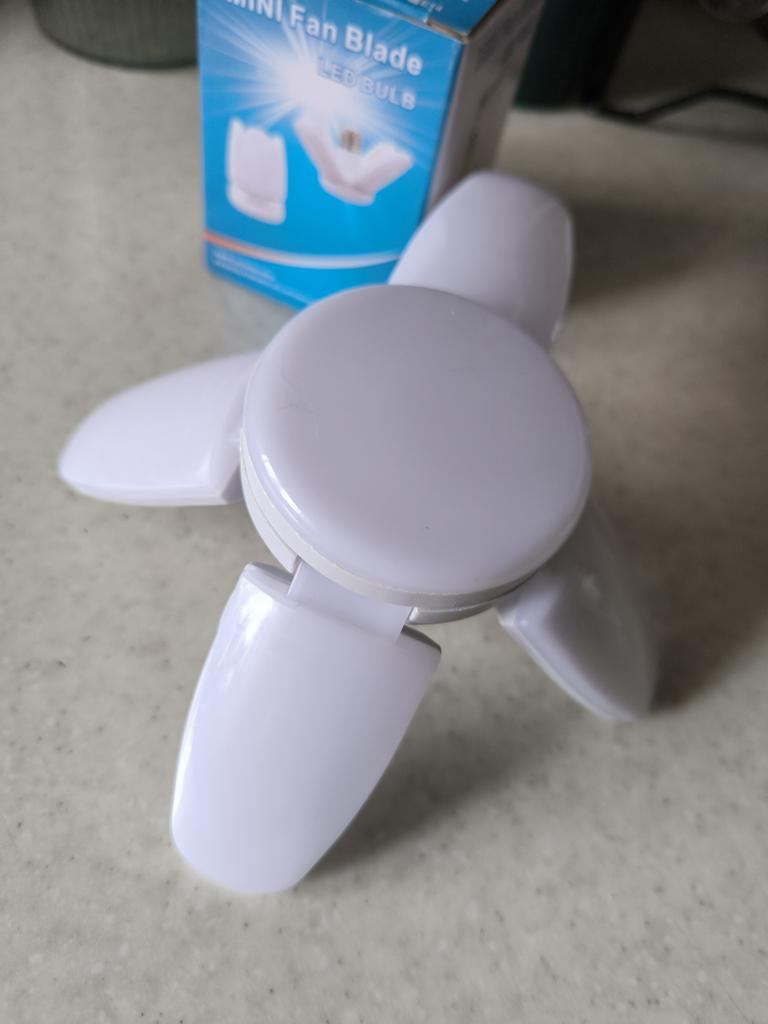 E27 LED bulb with foldable fan blades – a smart solution for strong and focused lighting - Fits most bulb sockets, no special adapters required. - The blades are deformable and customizable, so you can direct the light exactly where it's needed.. - Provides strong and energy-efficient lighting. - Compatible with electricity in homes and institutions. - Perfect for garages, workshops, warehouses, kitchens or general ceiling lighting. A combination of a powerful LED light with a unique folding design provides a lighting solution tailored exactly to your needs – simple, efficient, and easy to install.