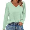 Women's Fashion Casual Long Sleeve Solid Color Shirt Women's V-Neck Tops