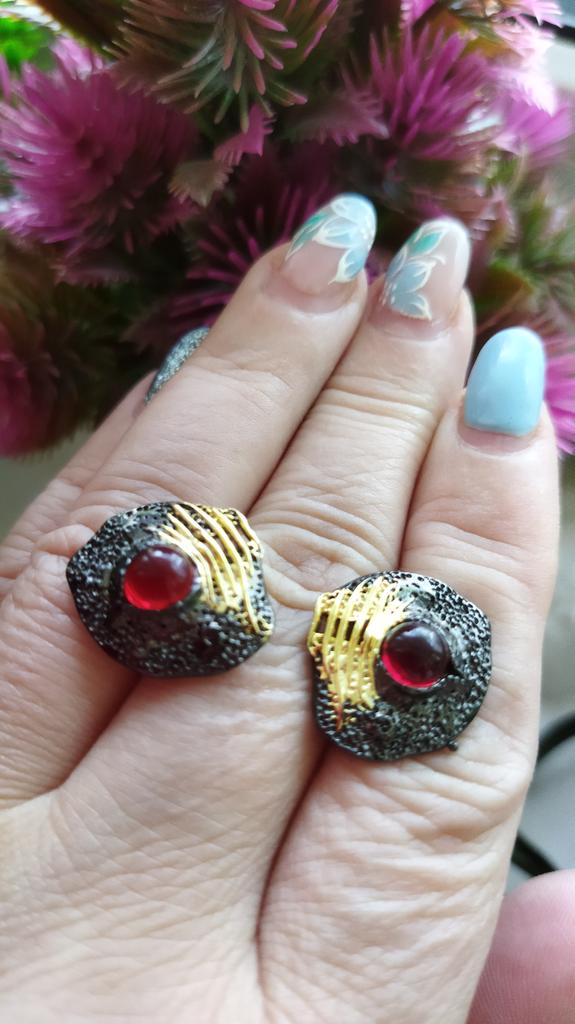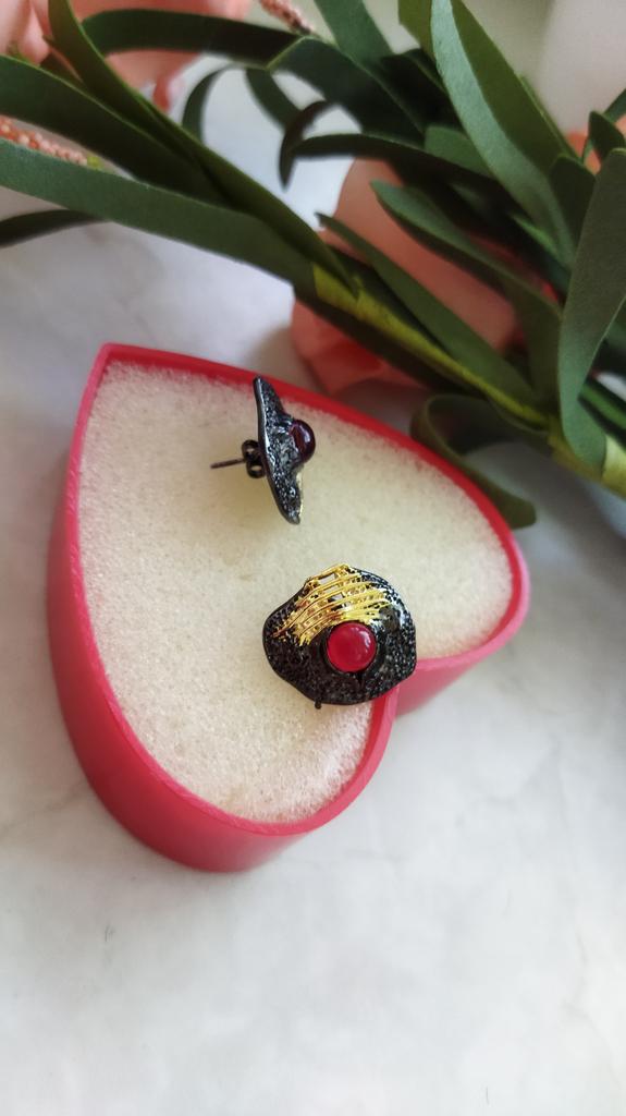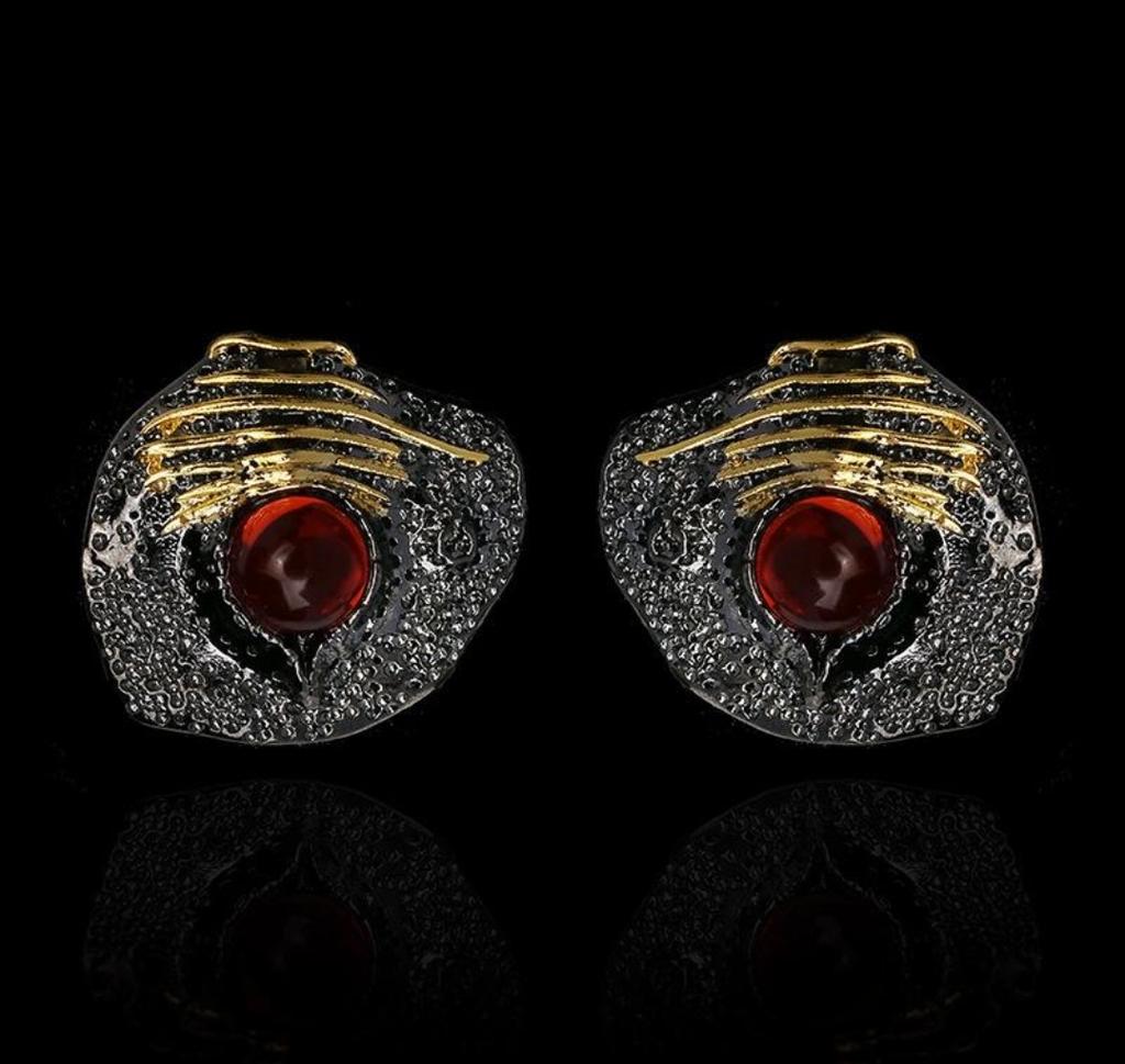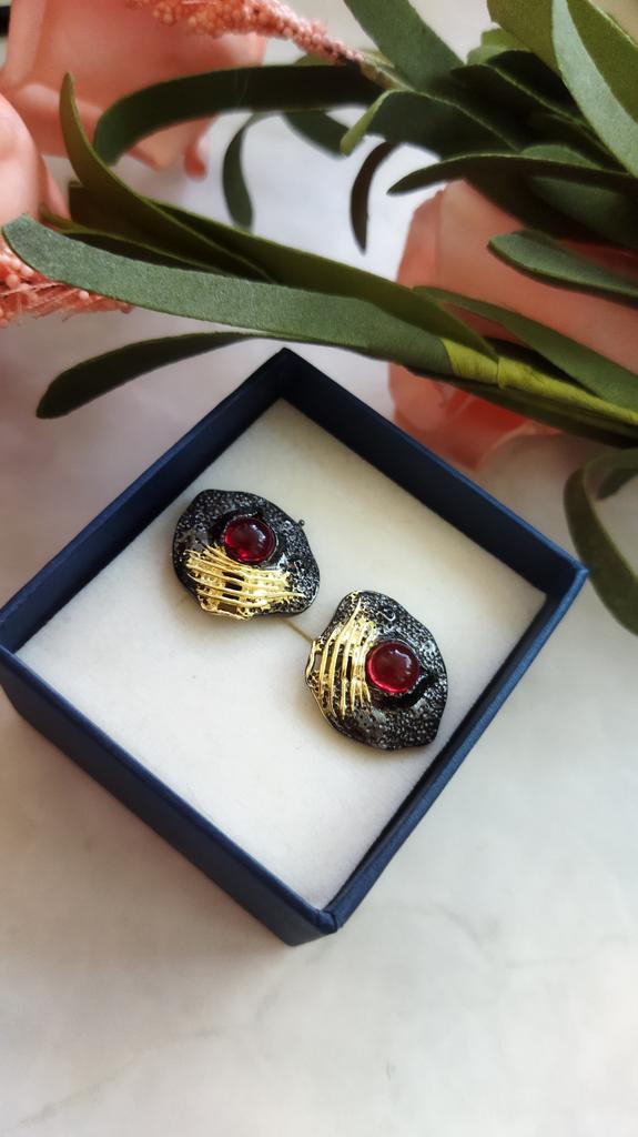 עגיל יצירתי לנשים עגיל זהב שחור לא סדיר ייחודי משובץ אבן חן אדומה עגיל תכשיטים איטלקיים עגיל תכשיטי נשים