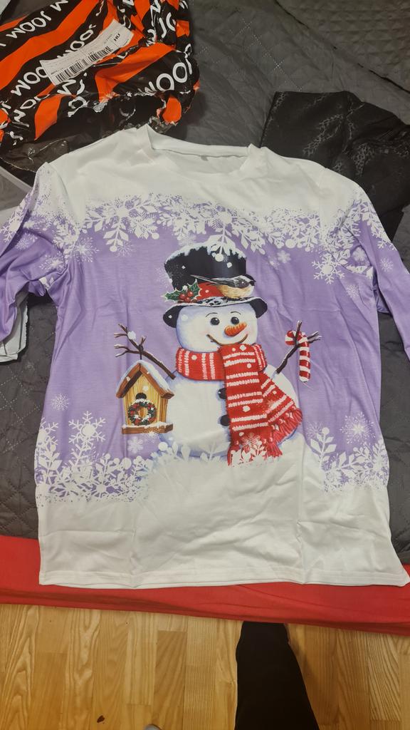 Karácsonyi ruhák Új női divat Karácsonyi hóember nyomtatott pulóver felsők Alkalmi hosszú ujjú ingek Kényelmes kerek nyakú blúzok, nagy méretű