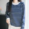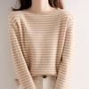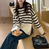 Striped knitted sweater women's autumn and winter new design crew neck top lazy style inside bottoming sweater jacket