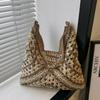 Summer Straw Knitting Bag Hollow Out Tote Bag Solid Color Beach Shoulder Bag Holiday Travel Handbag Boho Shoulder Purse for Wome