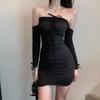 Lady's Sexy Off Shoulder Mini Dress Summer Solid Color Slash Neck Slim Short Sleeve