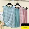 Export Women's Summer Thin Knitting Sunken Stripe Stretch Sleeveless Nightdress Mid Length Long Length Vest Style Pajamas Home Skirt