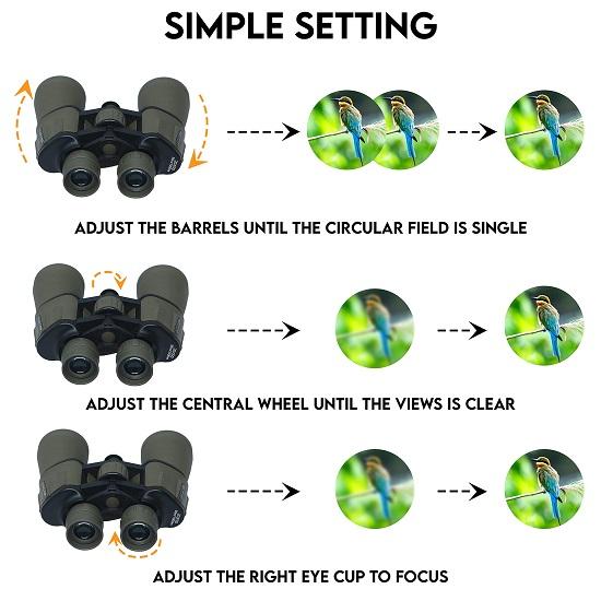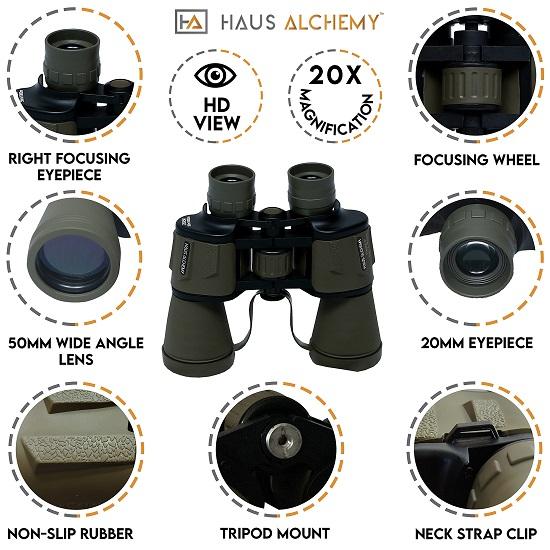 Binoculars 1000 Meters Long Distance Viewing - 20x Magnification 50mm Wide-Angle Lens HD View Water Resistant