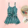 Summer Girl's Sleeveless Bow Sling Stripe Print Jumpsuit Climbing Suit