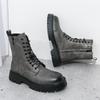Black Ankle Boots for Men Lace-up Zipper Pu Safety Shoes Motorcycle Boots Gray Brown Platform Boots