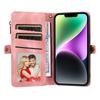 For iPhone 15 RFID Blocking Stand Leather Case Drop-proof Phone Cover Zipper Pocket Wallet with Strap
