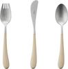This children's cutlery set features the same pattern colors as Cutipol's signature GOA series of cutlery. The knives are not sharp and are suitable for cutting omelets and hamburgers, as well as spreading butter and jam. While intended for use by children around 5 or 6 years old, the construction is the same high quality as our previous products, and adults can also use them casually.