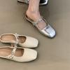 Flat bottom square head silver French bag head drag girl 2025 summer and autumn new shallow mouth Doudou grandma Mary Jane shoes