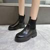 Autumn and Winter New Black Short Boots, Women's Retro Elastic Socks Boots, Small Leather Boots, Martin Boots, Women's British Style Plush Boots