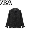 HOUZHOU Printed Shirt Women Flower Spring Black Elegant Chic Vintage Long Sleeve Large Size Loose Tops