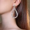 Fashion Ear Studs Bridal Wear Accessories Women Earrings Diamond Claw Chain Jewelry Double Water Drop