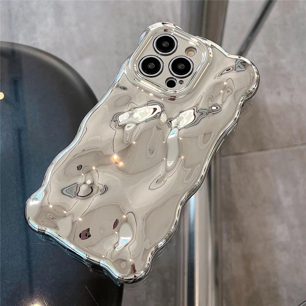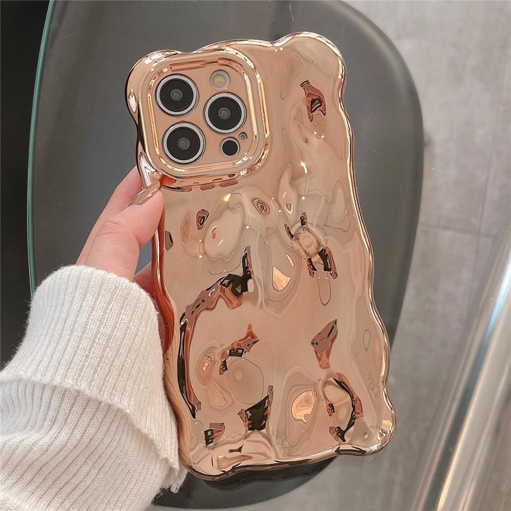 Luksus Plating Rynke Bølget Curly Edge Telefonveske For iPhone 15 11 12 13 14 Pro Max 3D Ujevnhet Mykt kamerabeskyttelsesdeksel