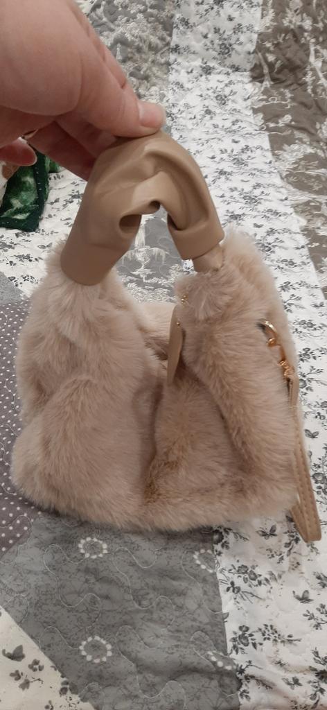 Yogodlns Kvinner imitert pels plysj håndvesker Rynket håndtak Liten dame skulder Crossbody veske Casual Half-Moon Hobos Vintervesker for kvinner