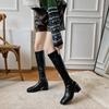 Retro Over-the-Knee Boots for Women - 2024 European & American Style, Black Soft Leather, Side Zipper, Square Toe, Medium Thick Heel