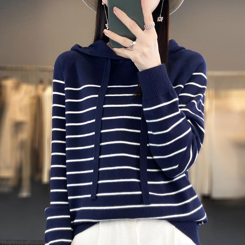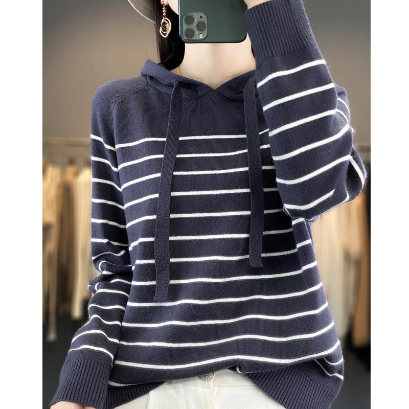 DAFIFY Mote Casual Høst Vinter Stripete Trykk Langermet Hettegensere for Kvinner