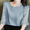 Elegant og søt blonde topp vår med syv ermer chiffonskjorte