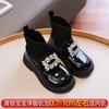 Girls Rhinestone Princess Boots Square Buckle Kids Sweet Sock Shoes Children Leather Boots Soft Sole Anti-Slippery 2024 New