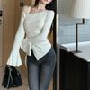 Fashion Off Shoulder Skew Collar Slit Sexy T-shirt Women Tops Elegant Long Sleeve Casual Women's T Shirt Irregular Chic Slim Ladies Pullover Tee 26009