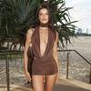 Women's Spring Summer Sexy Hottie Backless Leopard Print Short Neck Cardigan Tank Top