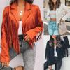 Fleece-motorsykkeljakke for kvinner i kunstskinn med stående krage og kort glidelås (Modell 3120)