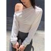 Long-sleeved T-shirt for Women In Spring and Autumn New Women's Clothing Irregular Hem Pleats Chic One-shoulder Solid Color Top