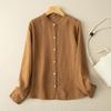 Spring Autumn Retro Small Collar Western Style Simple Solid Color Cotton Hemp Versatile Long Sleeve Bottom Shirt Blouses & Shirts