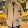 Unisex Hong Kong Style Loose Multi-Pocket Shirts with Five-Point Sleeves - Trendy Casual Tops for Teens