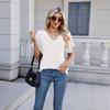 GMXIA Spring Women's Loose Casual Solid Color V-neck T-shirt Short Sleeve