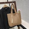 Women Crochet Beach Handbag with Tassel Weaving Travel Handbag Zipper Closure Retro Straw Handbag Ladies Summer Daily Bag