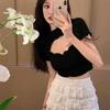 Black Suspender Top, Summer New Spice Girl Outer Wear Open Navel Short Hollow Back Sleeveless Top