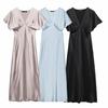 2025 Spring/Summer Women's Silk Satin Pleated Pullover Dress with Round Neck and Short Sleeves
