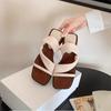 [] Xiaoxiang square head heightened thick bottom wrapped with beach vacation slippers women's sandals wear summer