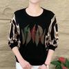 Vintage Leopard Printed Loose Shirt Female Clothing Casual 3/4 Sleeve Summer V-Neck Button Chic Spliced Commute Striped Blouse