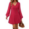 V-neck Puffed-sleeve Solid-color Knitted Sweater Dress for A Casual Date In Autumn and Winter