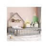 Kinderbett 140x200cm, Bodenbett mit Tür für Kinder Mädchen & Junge, Grau (Ohne Lattenrost & Matratze)