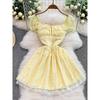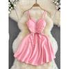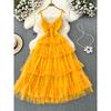 French style Pure Desire Lace-up V-neck Sling Dress Women Summer New Lace Embroidery Waist Slimming Cake Skirts