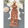 Seaside Holiday Halterneck Smudges Print Fashion Suit
