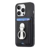 For iPhone 16 Pro Case Ring Kickstand Leather Back Cover with Magnetic Detachable Card Holder