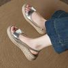 Korean version of fashion soft leather open-toed sandals women's simple versatile comfortable weave heel casual French temperament sandals women