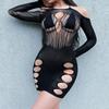 Long Sleeve Hip Wrap Skirt Sex Underwear Mesh Sexy onesie Pajamas Backless Tights