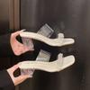 Fashion Shoes for Women Square Toe Slingbacks Women's Slippers Summer Rhinestone Transparent Solid Dress Chunky Heels Slippers