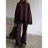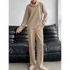 Women's Casual Two-Piece Suit, Long Sleeve, Wide-Leg Pants, Loose Turtleneck, Knitted, European and American Fashion
