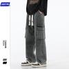 Three-dimensional Pocket Tooling Jeans Men's American Loose Straight Retro Versatile Wide-leg Trousers