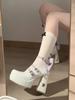 Fashion Heels Women Pumps Platform High Heels Ankle Strappy Butterfly-knot Casual Office Shoes Block Mary Jane Shoes White Zaptos Mujer