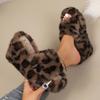 New leopard print fluffy slippers women's spring and autumn new flat bottom comfortable home plush cotton slippers